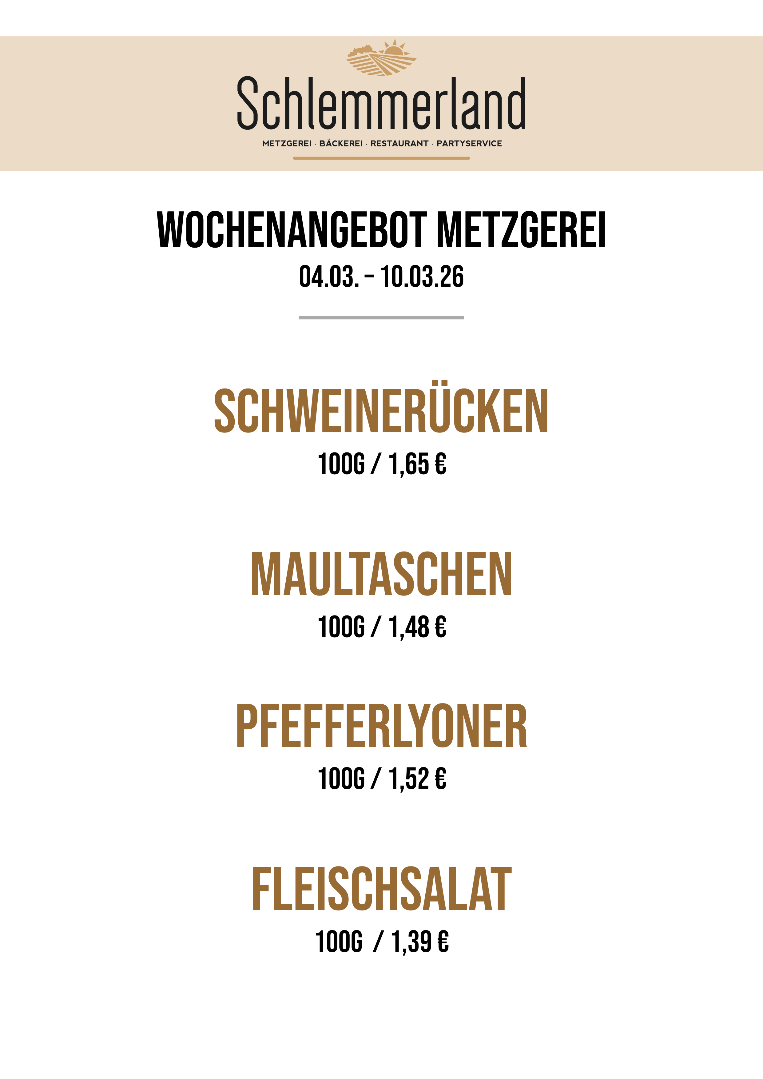 Hier finden Sie unsere Wochenkarte sowie die Metzgerei-Angebote: